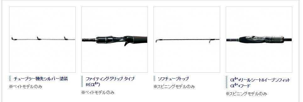 | 品番 | 全長(m) | 継数(本) | 仕舞寸法(cm) | 自重(g) | 先径/元径(mm) | 適合ルアーウェイト(g) |